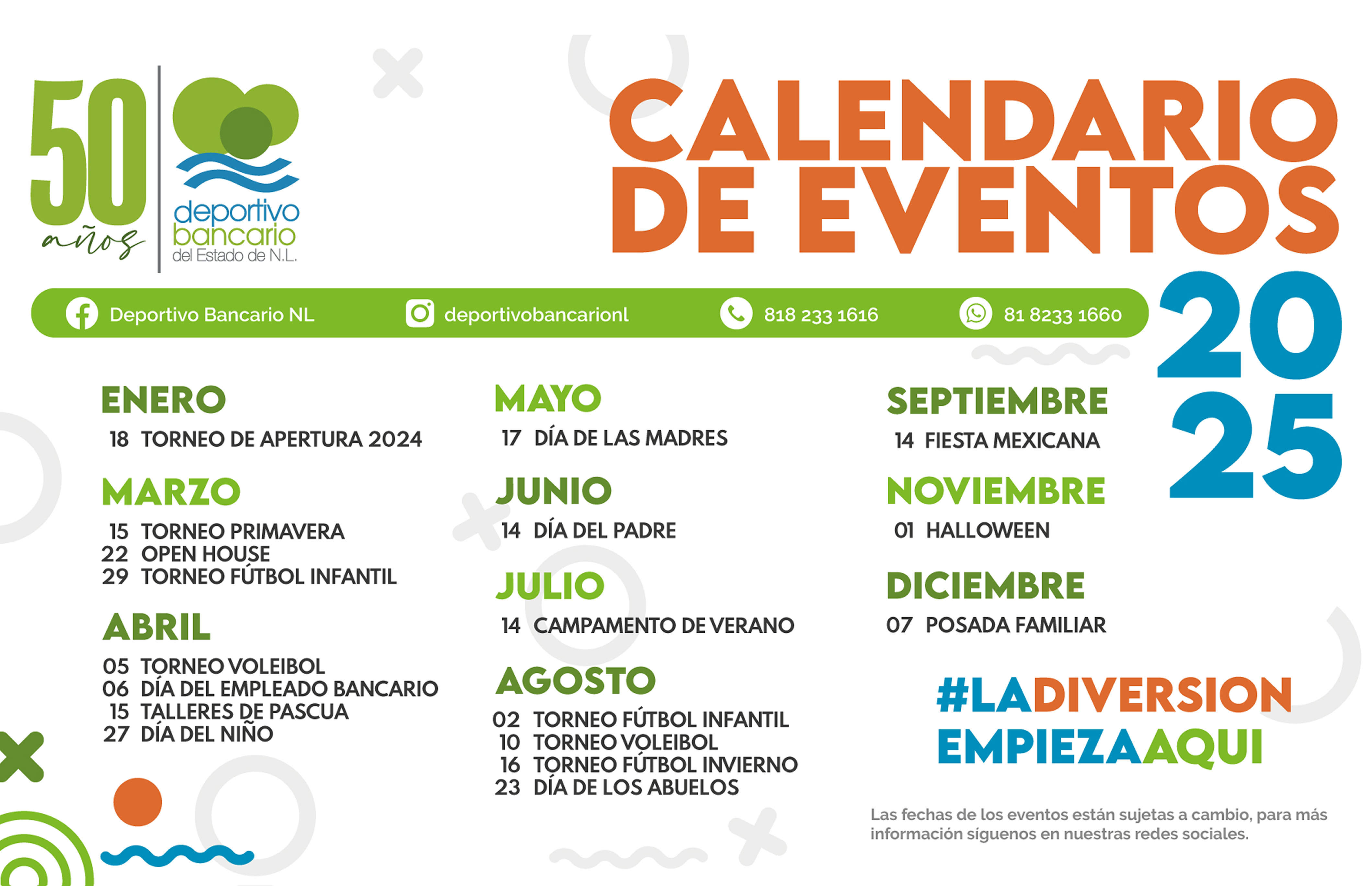 Te invitamos a conocer el Deportivo Bancario, solicita una visita guiada y aprovecha las instalaciones al ser socio. Solicita más información: 81 82331616 ext. 805